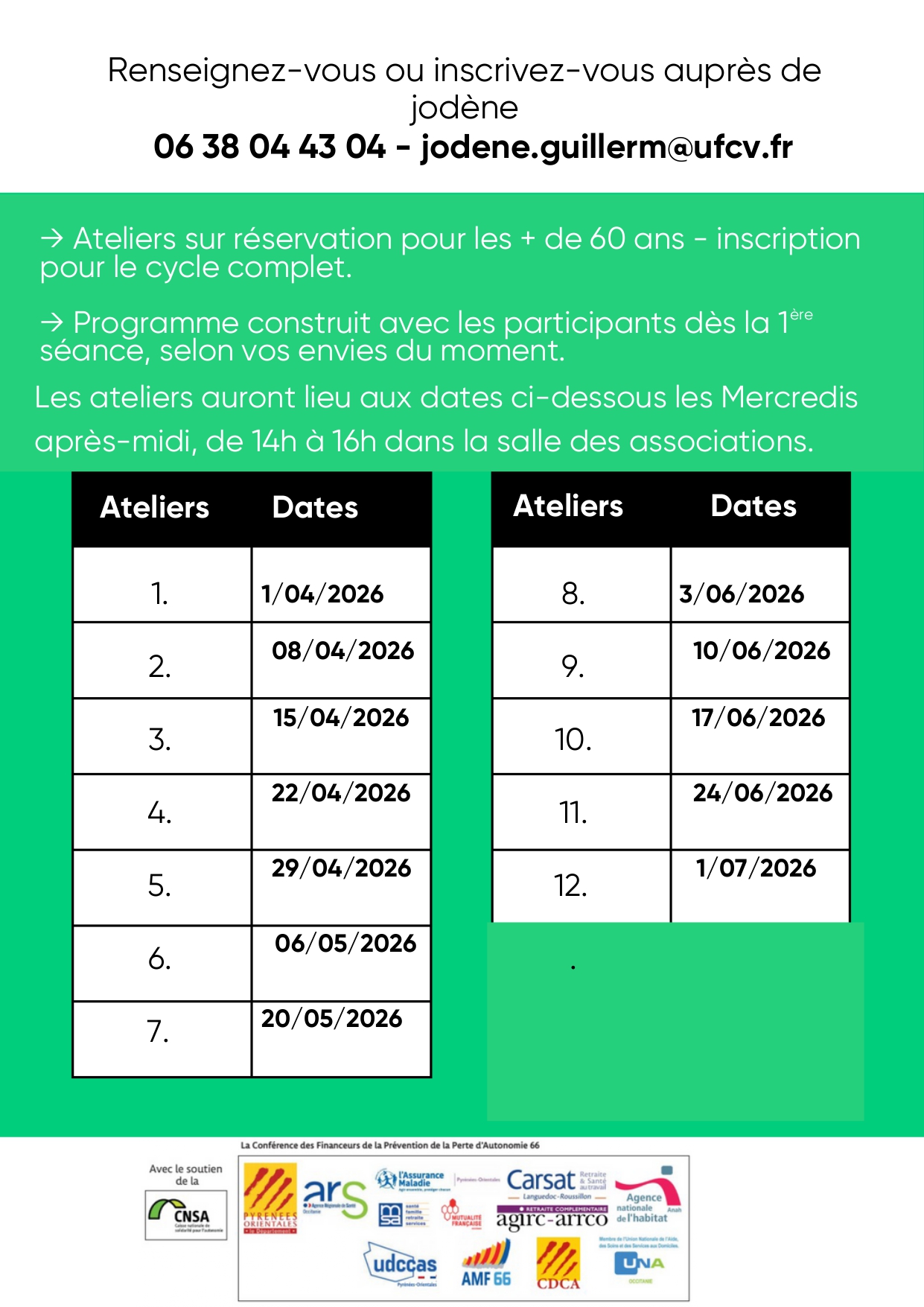L’Ufcv propose (avec le soutien financier de la conférence des financeurs de la prévention de la perte d’autonomie du département de l’Hérault)