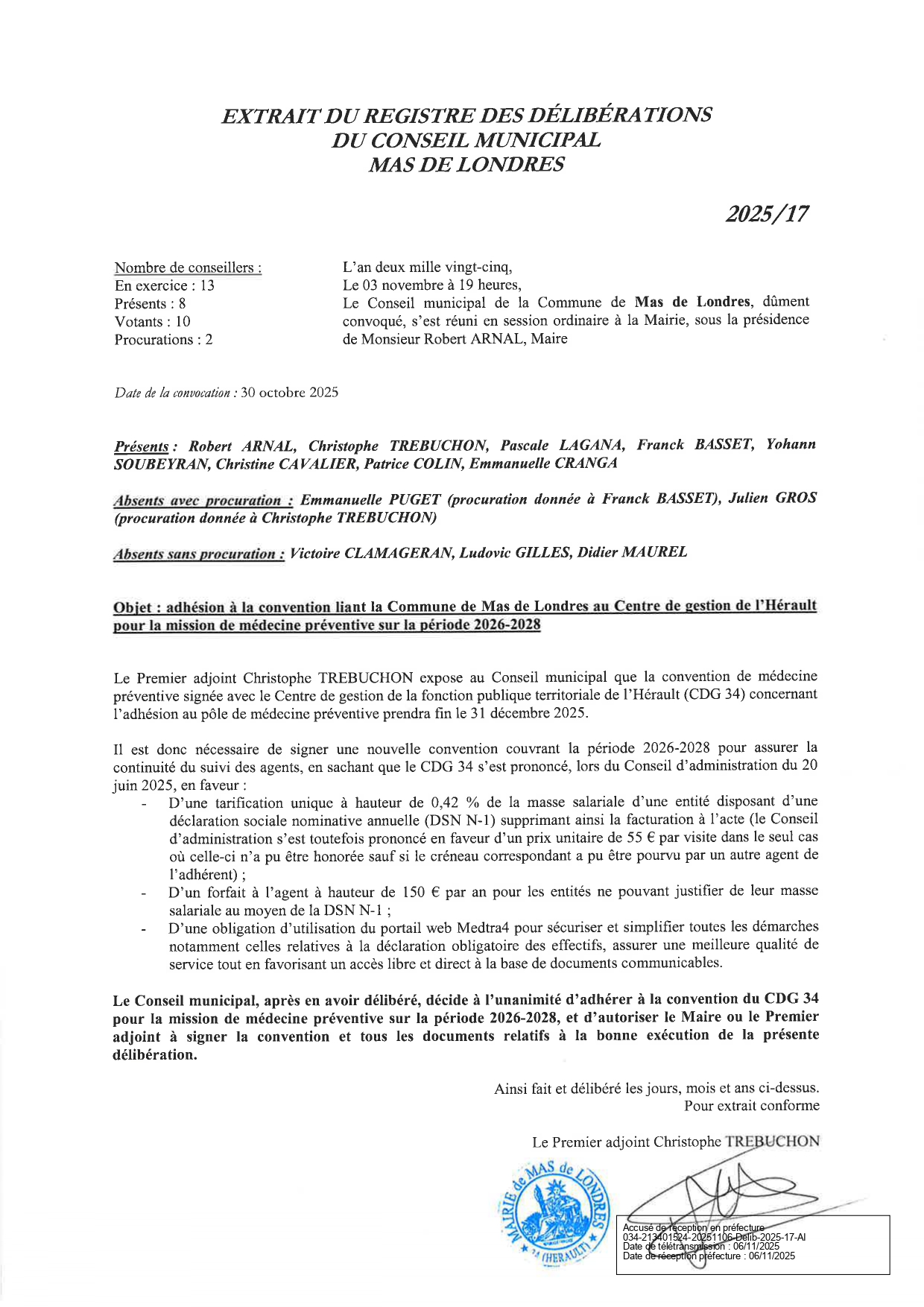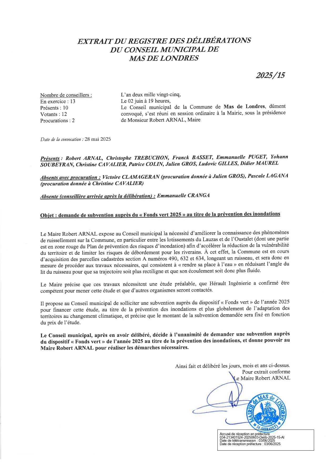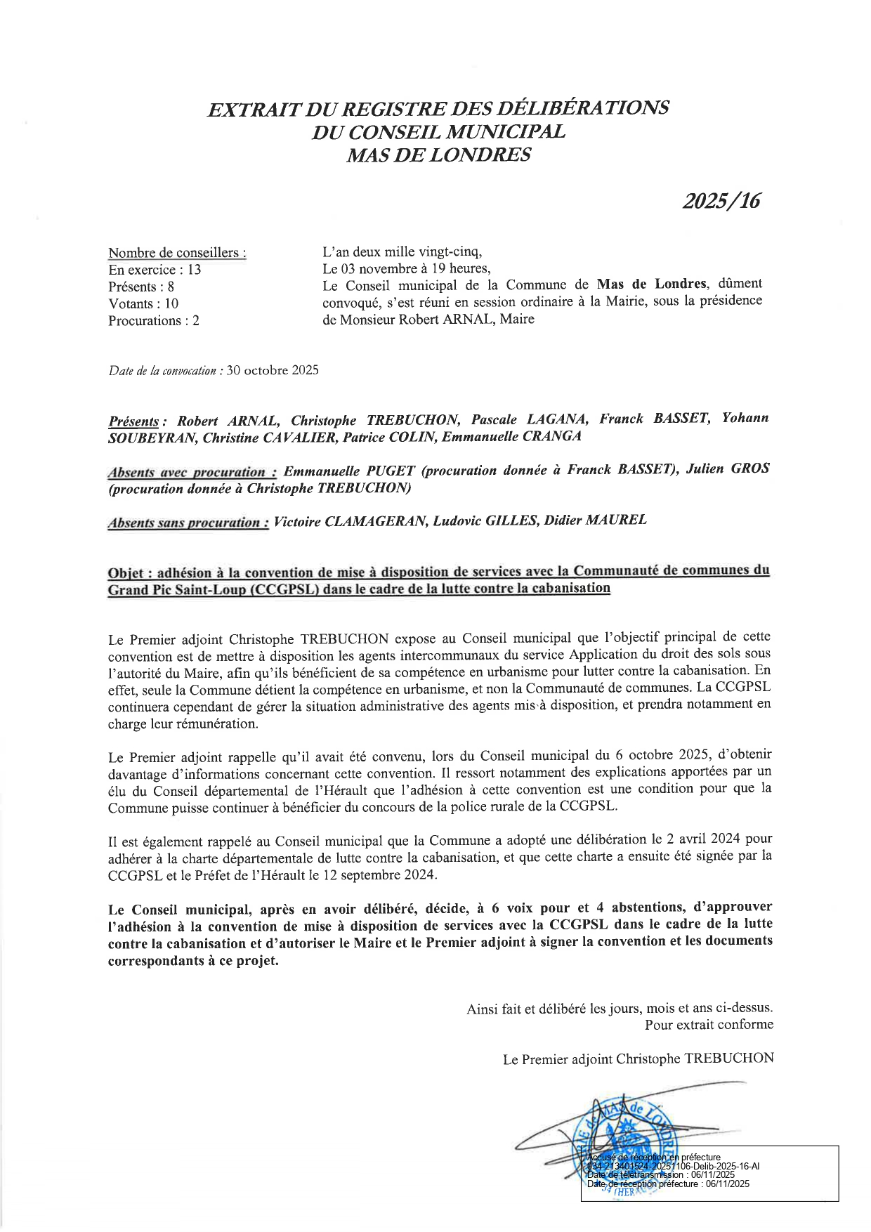 Conseil municipal du Mas de Londres