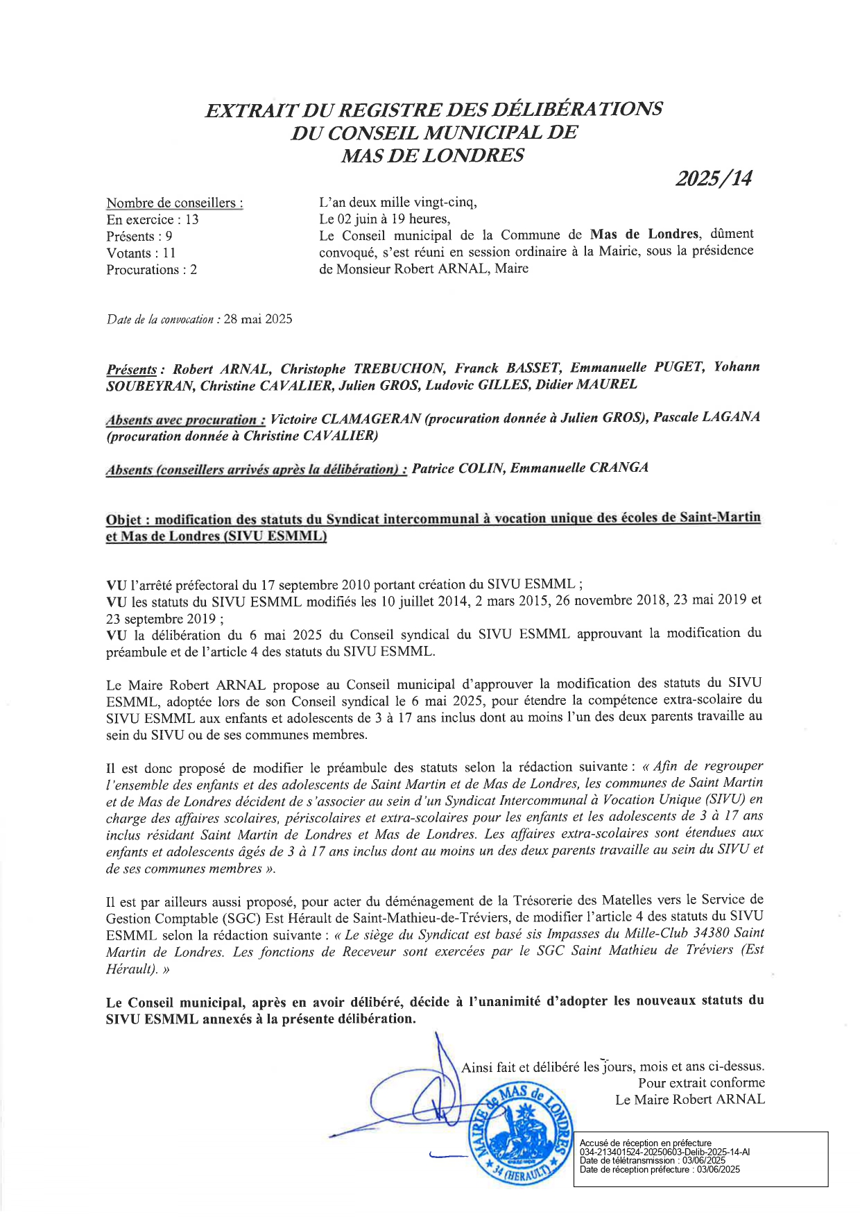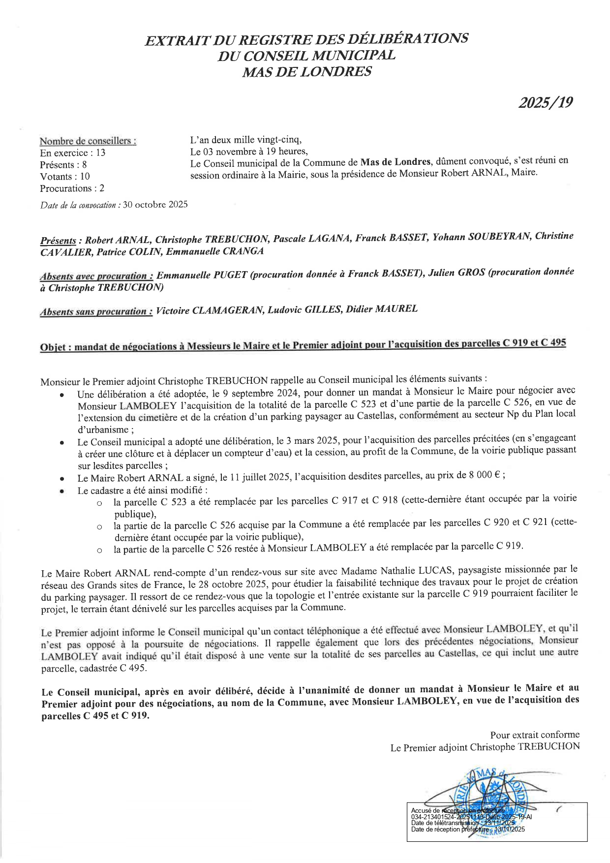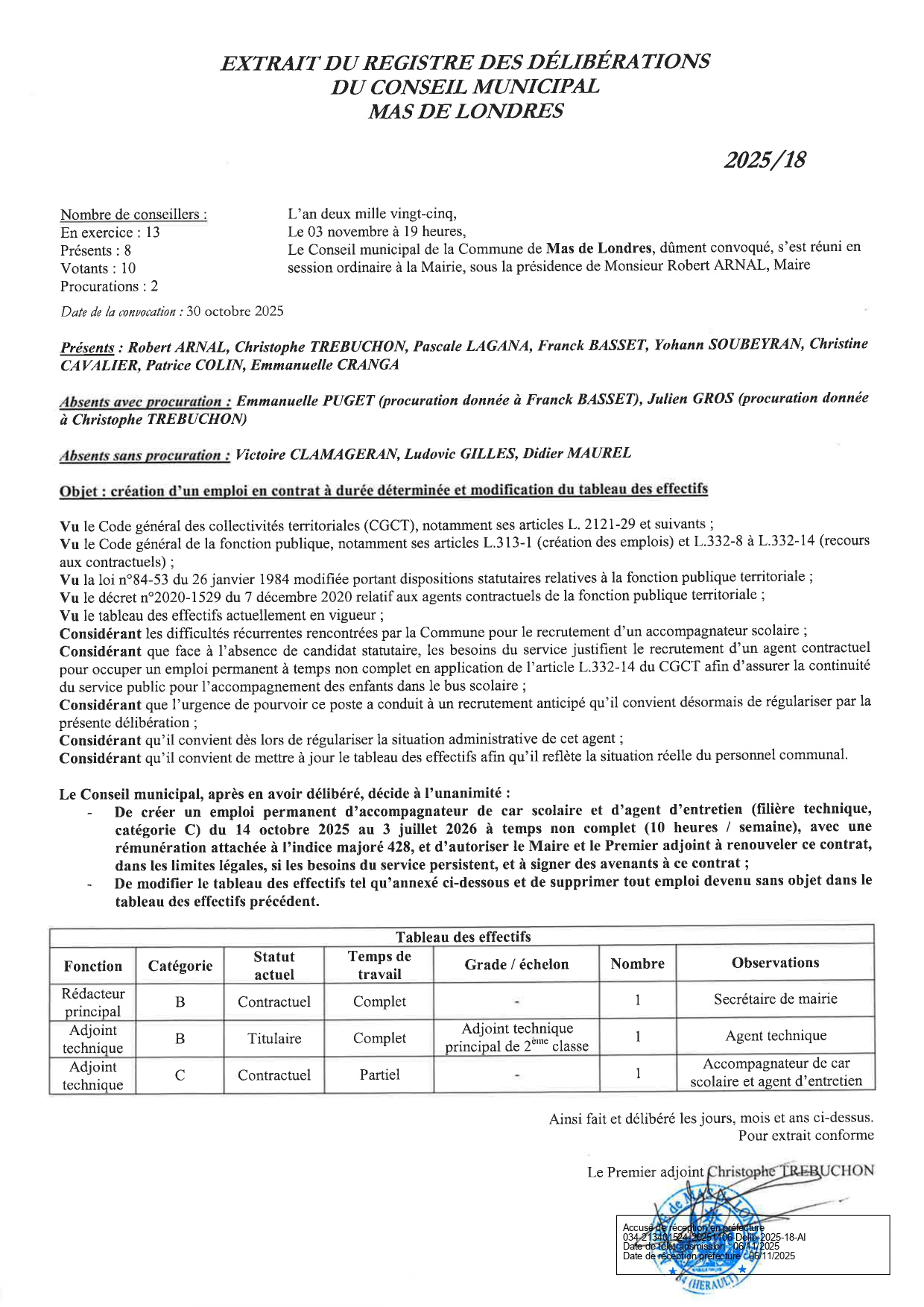 Conseil municipal du Mas de Londres